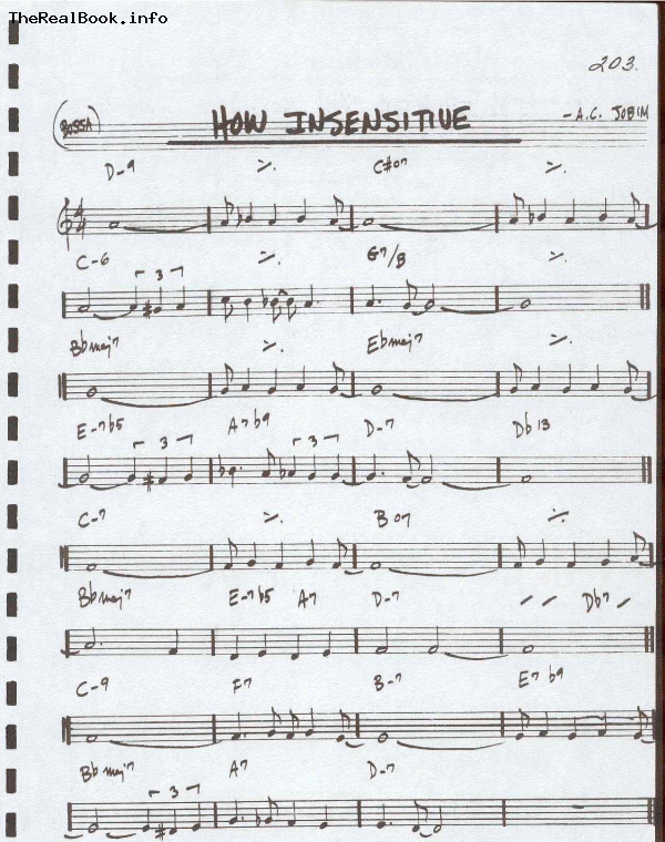 How insensitive, from the album the changing lights, was. How insensitive, from the album de novo, was released in the. How insensitive starts on the tonic minor chord, dm7.